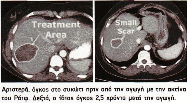 Κάνοντας μια μικρή έρευνα, εμφανίζεται στο Διαδίκτυο μια τουλάχιστον κλινική, η Mayo στο Ρότζεστερ της Μινεσότα των ΗΠΑ(http://www.mayoclinic.org/rfatumortreatrst/), όπου εφαρμόζεται ραδιοσυχνότητα αντί ραδιενέργεια Κοβαλτίου 60 -με χαμηλή ισχύ και μέσω καλωδίου, οπότε έχει υποδεέστερα αποτελέσματα εκείνων του Ράϊφ.