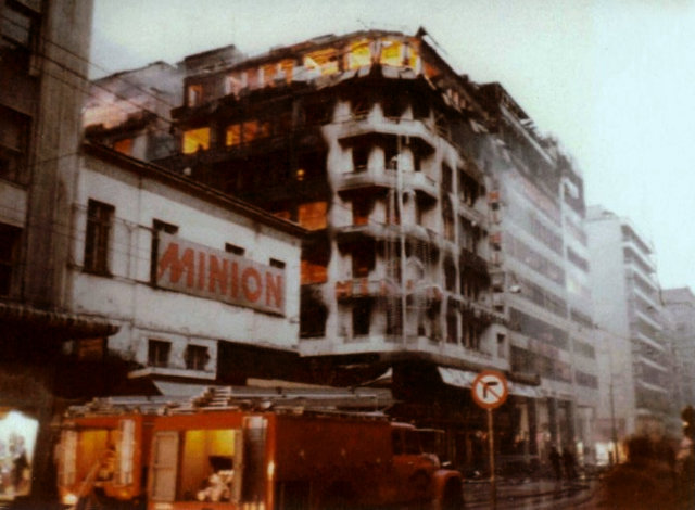 Τα ξημερώματα της 19ης Δεκεμβρίου 1980 δύο ταυτόχρονες πυρκαϊές κατέστρεψαν δύο από τα ιστορικότερα πολυκαταστήματα της Αθήνας, «Μινιόν» και «Κατράντζος», εν μέσω της εορταστικής περιόδου. Επρόκειτο για εμπρησμούς και αποδόθηκαν από τις αρχές σε τρομοκρατικές ενέργειες.