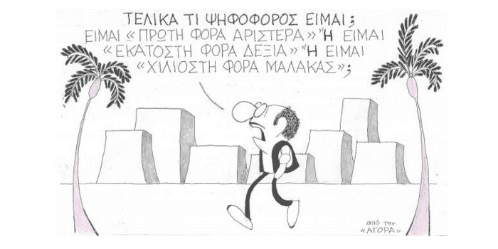 Ναι ρε φιλάρα του εξωτερικού. Αφού λες πως αυτός είμαι εγώ, έτσι θα ΄ναι. Έκανες λάθος, όμως, στη λεπτομέρεια. Το δάχτυλο το δείχνουν έτσι εσύ και τα κολλητάρια σου. Εγώ, ως Έλλην, το δάχτυλο στο δείχνω κλίνοντάς το σε ορθή γωνία με τεταμένα τα υπόλοιπα δάχτυλα και κινούμενο δίκην εμβόλου. Α, και πες μου παλληκάρι, τον Αύγουστο θα έλθεις μόνος ή με το αγόρι σου; Να ξέρω, να είμαι καταλλήλως προετοιμασμένος. Α, και πού ’σαι ….. φέρε και μερικές eau de cologne Givenchy pour hommes, διότι τότε μπορεί να έχουμε δραχμή και να μη μπορούμε να εισάγουμε, ενώ τώρα ο Hondos είναι τίγκα στα όλως επουσιώδη εν υπερεπαρκεία.