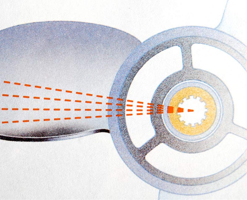 H κλίση του προς τα έξω βοηθάει, ώστε να μειώνεται η υποπίεση που δημιουργείται από την έξοδο των καυσαερίων και να εμποδίζεται το καυσαέριο να οδηγείται στην πίσω επιφάνεια των πτερυγίων.