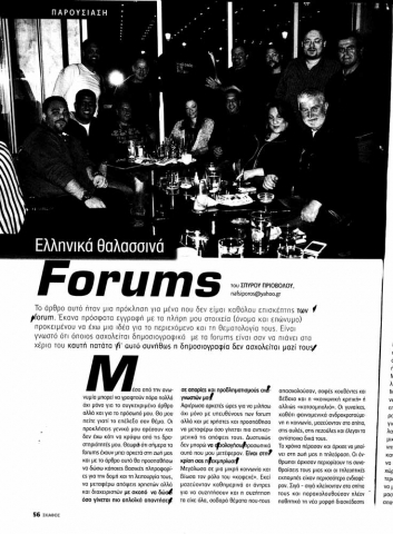 "Είναι γνωστό ότι όποιος ασχολείται δημοσιογραφικά με τα forums είναι σαν να πιάνει στα χέρια του καυτή πατάτα, γι' αυτό συνήθως η δημοσιογραφία δεν ασχολείται μαζί τους".