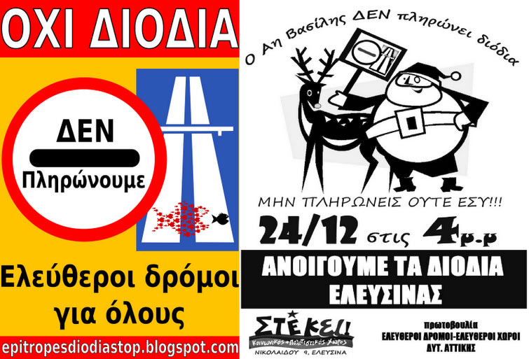 Ελεύθεροι δρόμοι χωρίς διόδια για όλους!Μακάρι να είχα τη δύναμη να κάνω καλά τους αρρώστους, να ταίσω τους πεινασμένους της γης, να κλείσω στη φυλακή όλους τους πολιτικούς και δημοσιογράφους που αθέτησαν τον όρκο τους, να φέρω πίσω τα κλεμμένα και να διώξω τους τροϊκανούς και τους τοκογλύφους απ' αυτή την πατρίδα. Δεν μπορώ όμως, δυστυχώς, να κάνω κάτι περισσότερο απ' το να ενώσω κι' εγώ τη φωνή μου με τις φωνές όλων υμών και να επαναλάβω τα ίδια λόγια και φέτος, όπως ακριβώς ποντάρει κανείς στους ίδιους αριθμούς ενός τυχερού παιγνιδιού μέχρι να ανοίξει και γι' αυτόν το παράθυρο της τύχης...