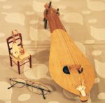Μικροσκοπική πλεκτή καρέκλα με λύρα και δοξάρι.Πέρασε κάμποσος καιρός και κάποια μέρα έμαθε ο αδελφός μου ότι ένα παλιό τέτοιο πλοίο, που το βρήκαν εγκαταλελειμμένο στη λίμνη της Ισμαηλίας, το έβγαλαν στη στεριά και το παράτησαν εκεί. Κάποιος συμμαθητής μου λοιπόν το φωτογράφισε και μου το έστειλε. Το μοναδικό πρόβλημα που αντιμετωπίζω τώρα είναι ότι δεν έχω μια φωτογραφία του πλοίου, που να είναι τραβηγμένη κάθετα στη μέση, ώστε να μπορέσω να υπολογίσω την κλίμακα. Κάνω βέβαια κάποιους υπολογισμούς, από το ύψος των επιβατών που υπάρχουν στις φωτογραφίες, και από το μέγεθος ενός ποδηλάτου που είναι φορτωμένο στο πλοίο. Περιμένω άλλη μια φωτογραφία για να ξεκινήσω.