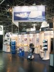 Σε δικό τους stand στο περίπτερο της Jabsco.Αλλά επειδή υπέπεσα στην παγίδα της μακρηγορίας, ξαναγυρνάω στο ερώτημά σου. Όχι, ποτέ δεν έλαβα επιδότηση από κάποιο πρόγραμμα του Κράτους, γιατί αφ’ ενός μεν στα πρώτα μου βήματα, που είχα ανάγκη, «έπρεπε» να έχω ήδη εξασφαλισμένους τζίρους, πράγμα άτοπο, αφ’ ετέρου, παρότι υψώνουμε τα τελευταία χρόνια ως λάβαρο την «καινοτομία», στην Ελλάδα και γενικότερα στην Ευρώπη, βάρος δίδεται μόνο σε ερευνητικούς σχηματισμούς και Πανεπιστήμια, παραγκωνίζοντας τελείως τους «ιδιώτες-ερευνητές» και την πρόσβαση τους σε κονδύλια.
