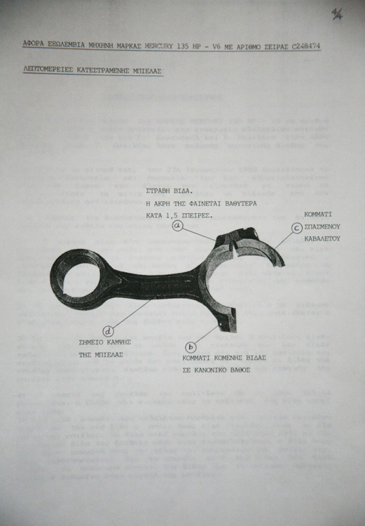 Έμεινα στον Ευσταθίου από το '81 μέχρι το '88. Διαφωνούσα όμως με την τότε πολιτική της εταιρείας σχετικώς με την κάλυψη κάποιων κινητήρων που είχε λήξει η εγγύησή τους. Έβλεπα ότι σε μερικές περιπτώσεις υπήρχαν προβλήματα με κάποιους κινητήρες, που δεν οφείλονταν σε κακή χρήση από τον πελάτη, και έπρεπε να τα καλύψει η εγγύηση, έστω και αν είχε λήξει. Οι Βέλγοι συμφωνούσαν μαζί μου, αλλά αυτό δεν άρεσε στον Ευσταθίου. Ένα άλλο θέμα, επάνω στο οποίο διαφωνούσαμε, ήταν ότι ο Ευσταθίου ήθελε να καλύψει μηχανές που δεν είχαν πρόβλημα, αλλά το είχαν δημιουργήσει οι πελάτες, κι' εγώ αρνιόμουν πεισματικά να υπογράψω. Θα σου δώσω να διαβάσεις την έκθεση πραγματογνωμοσύνης για ένα κινητήρα Mercury 135 ίππων, του οποίου είχε λήξει η εγγύηση. Την συνέταξα τον Φεβρουάριο του '93, όταν είχα ήδη φύγει από τον Ευσταθίου. Οι Βέλγοι συμφώνησαν μαζί μου και έστειλαν καινούργιο κινητήρα στον πελάτη. Αντώνης Κυριαζής ήταν το όνομά του...