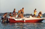Απ. : Δεν θα το έλεγα. Σύμφωνα με το ημερολόγιο που κρατάω έχω καλύψει συνολικώς γύρω στα 28.000 μίλια! Με ένα Hannibal 4,55 όργωσα ένα καλοκαίρι ολόκληρο το Ιόνιο, ξεκινώντας από το Σούνιο και περνώντας από την διώρυγα της Κορίνθου. Με το δε επτάμετρο, το οποίο ονόμαζα "Αητό", γύριζα όλες τις Κυκλάδες. Στη φωτογραφία αυτή που βλέπεις, γευματίσαμε στη Σίφνο πάνω στον "Αητό" 25 άτομα! Μιλάμε για ένα επτάμετρο σκάφος με φάρδος 3,6 μ.! Ένα προς δύο δηλαδή, στο επάνω βέβαια τμήμα του.