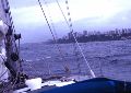 Άφιξη στη Bahia.21/9: Στις 03:00' τα ξημερώματα φαίνονται τα πρώτα φώτα της ακτής. Πριν ξημερώσει, καταφέρνουμε να διοπτεύσουμε το φάρο της εισόδου στην Μπαΐα Ντε Τόντος Λος Σάντος [BAHHIA DE TODOS LOS SANTOS (Κόλπος των Αγίων Πάντων)] όπου βρίσκεται το Σαλβαδόρ. Η ακτή είναι χαμηλή, δεν υπάρχουν ευδιάκριτα σημεία ή βουνά. Η ανατολή του ήλιου μας φέρνει μια σειρά καταιγίδων, χάνουμε την οπτική επαφή με τη στεριά. Ζυγώνουμε παρακολουθώντας τις ισοβαθείς με το βυθόμετρο. Άνεμος και βροχή αυξάνονται. Με φλοκάκι και 3 μούδες επιτέλους μπαίνουμε στο μεγάλο κόλπο. Είναι ίσως η πιο έντονη στιγμή του ταξιδιού, καθώς η αϋπνία, η κακή ορατότητα, τα μπουρίνια, οι ξέρες και τα αβαθή συντελούν στη δυσκολία της τελικής προσέγγισης.