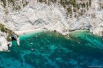Αποθαλασσωθήκαμε, καθώς το πλοίο πλησίαζε στις γαλάζιες σπηλιές του βορειοανατολικού κάβου, με τον Νίκο πότε να βιντεοσκοπεί και πότε να φωτογραφίζει, τρυπώντας μου την πλάτη με την τεράστια Panasonic! Σίγουρα κάποιες βωμολοχίες έβγαιναν απ' τα χείλη του, αλλά η έλειψη κράνους και ενδοσυνεννόησης δεν τις άφησαν να φθάσουν ως τ' αυτιά μου. Τα είπε όλα μαζεμένα όταν προσθαλασσωθήκαμε στο Κερί. Η αποθαλάσσωση ήταν πάντως σχετικώς βίαιη, λόγω του πελαγίσιου "σουέλ" (βουβό κύμα). Ποια ήταν η συνέπεια; Στην παραλία του Κεριού διαπιστώσαμε ότι η πίσω αριστερή pvc χούφτα του Lomac, πάνω στην οποία στηρίζεται το ένα από τα τέσσερα ανοξείδωτα στηρίγματα του κινητήρα, είχε τινάξει τα πέταλα. Ευτυχώς το ανταλλακτικό έφθασε, την άλλη κι' όλας ημέρα, απ' την Αθήνα και έτσι η "ζημιά" αποκαταστάθηκε.